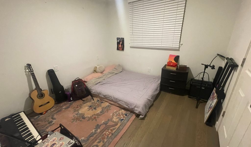 Good-sized bedroom in a house with a shared living room, bathroom, and kitchen. There is a closet in the room, and the door locks. Within walking distance from Sheridan College. The living room and kitchen are sizable and very open. GO station and Oakville Place are not far. 2 students currently live in the property, both animation students at Sheridan. Very quiet, very busy, but friendly. There are 2 cats, one very shy and one very friendly. Chores are split among roommates, but everyone is lenient if things get busy.