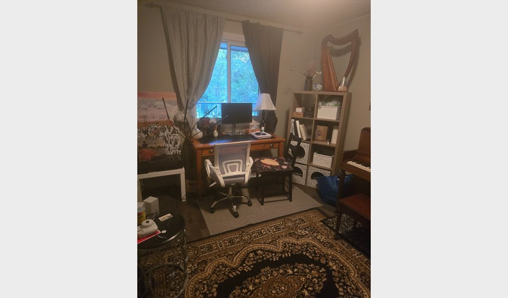 The apartment is a nice cozy 2 bedroom fully furnished apartment except for the room you will be staying in which is an office space right now but will be cleared out , it has a well kept wood burning fire place,in suite laundry as well as a parking space